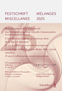 À l’occasion de son 25ème anniversaire, le réseau notarial swisNot publie un ouvrage de Mélanges comprenant des contributions relatives à des questions actuelles du droit de la société anonyme (SA). Les contributions proposent un premier bilan de la réforme du droit de la SA et analysent plusieurs questions pratiques majeures, notamment en lien avec l’assemblée générale, la documentation des décisions sociales, les enjeux ESG, la transformation d’entreprises et les carences organisationnelles. De plus, près de 15 ans plus tard, Monsieur le professeur Jean-Frédéric Maraia se rappelle au bon souvenir de swisNot en proposant des modifications des règles sur la transposition. La plupart des thèmes a fait l’objet de présentations orales dans le cadre de la journée de formation continue du 6 novembre 2025 en collaboration avec la faculté de droit de l’Université de Genève.